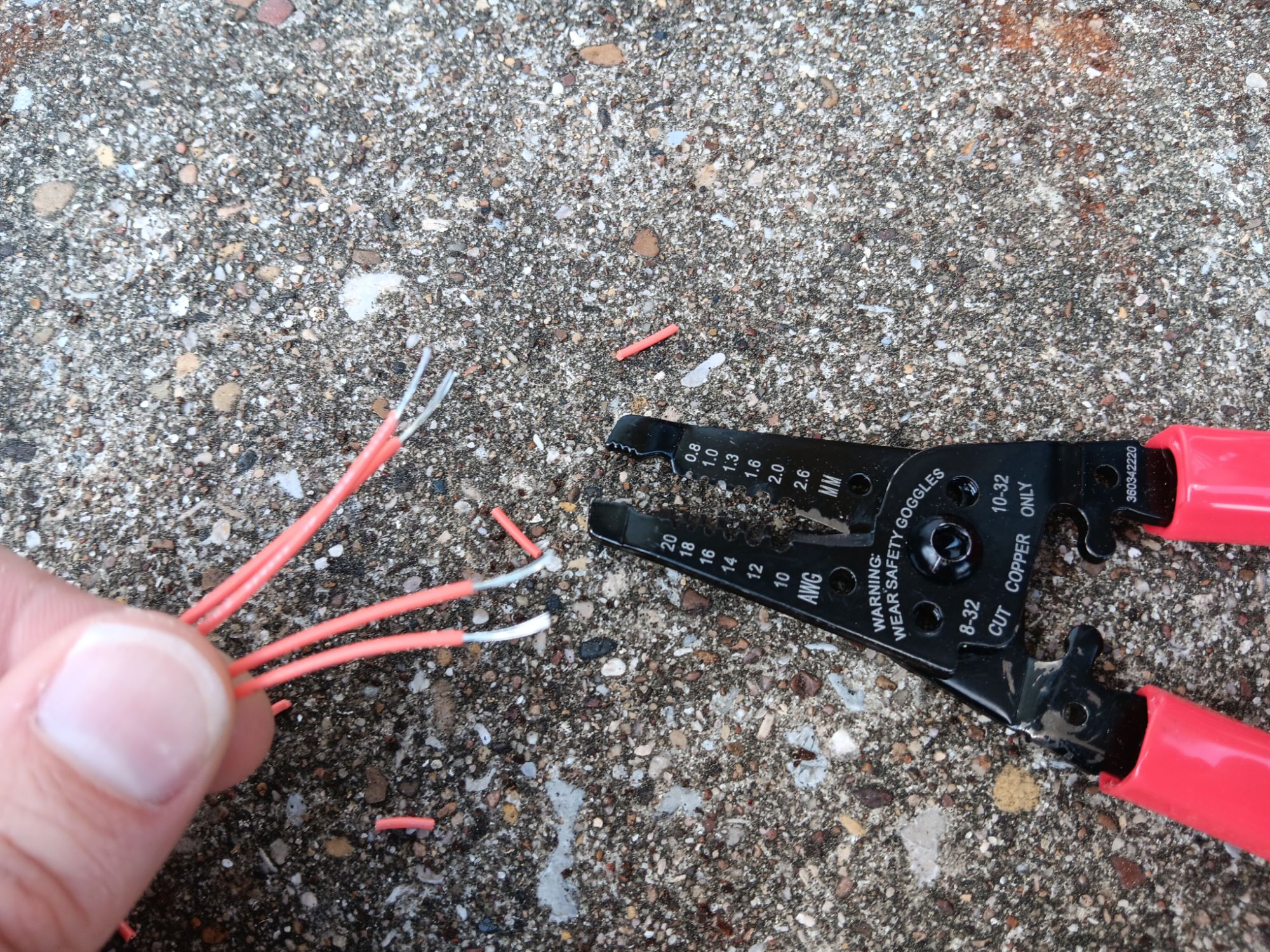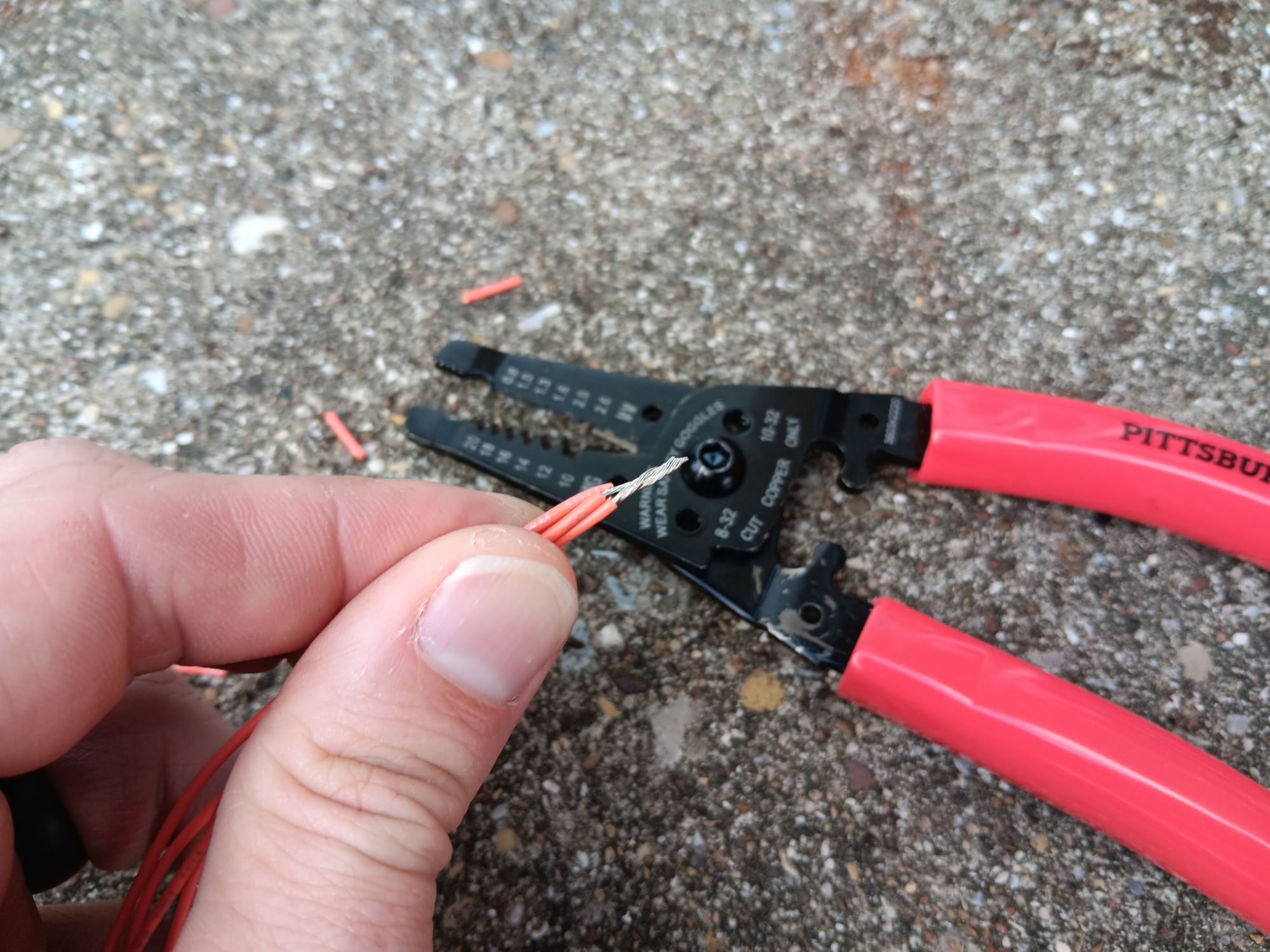 Now that the wires are stripped, I twist the ends together.