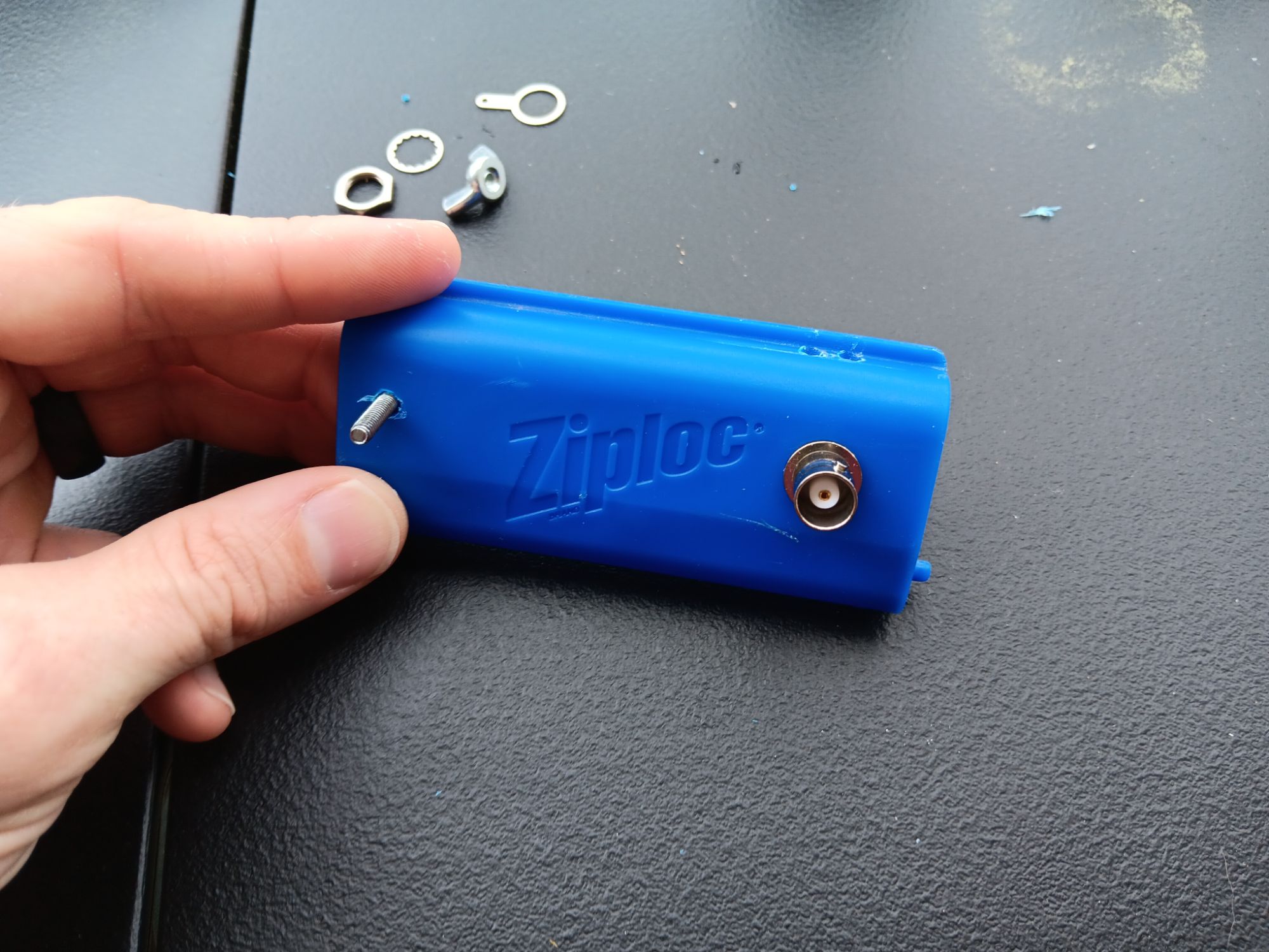Here, I have demonstrated the order in which I have attached the BNC connector to the feedpoint plate.