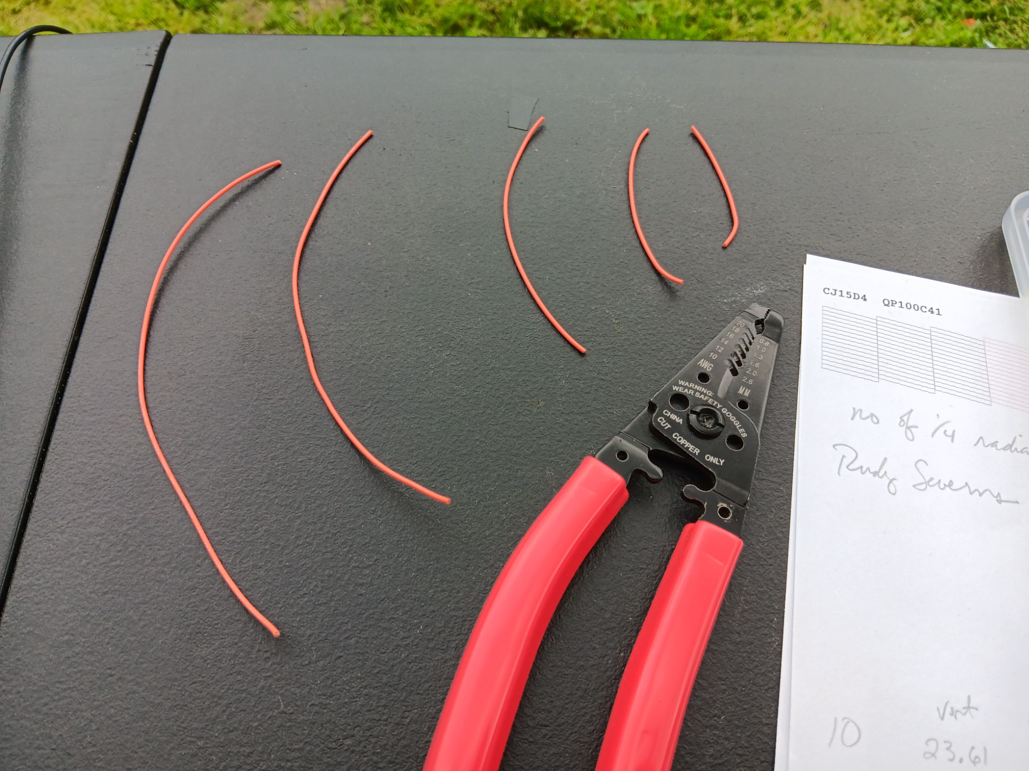 Now, I have cut a new piece of wire for my next resonant section. Since the first one was cut for 10m, this next piece will be for 12m.